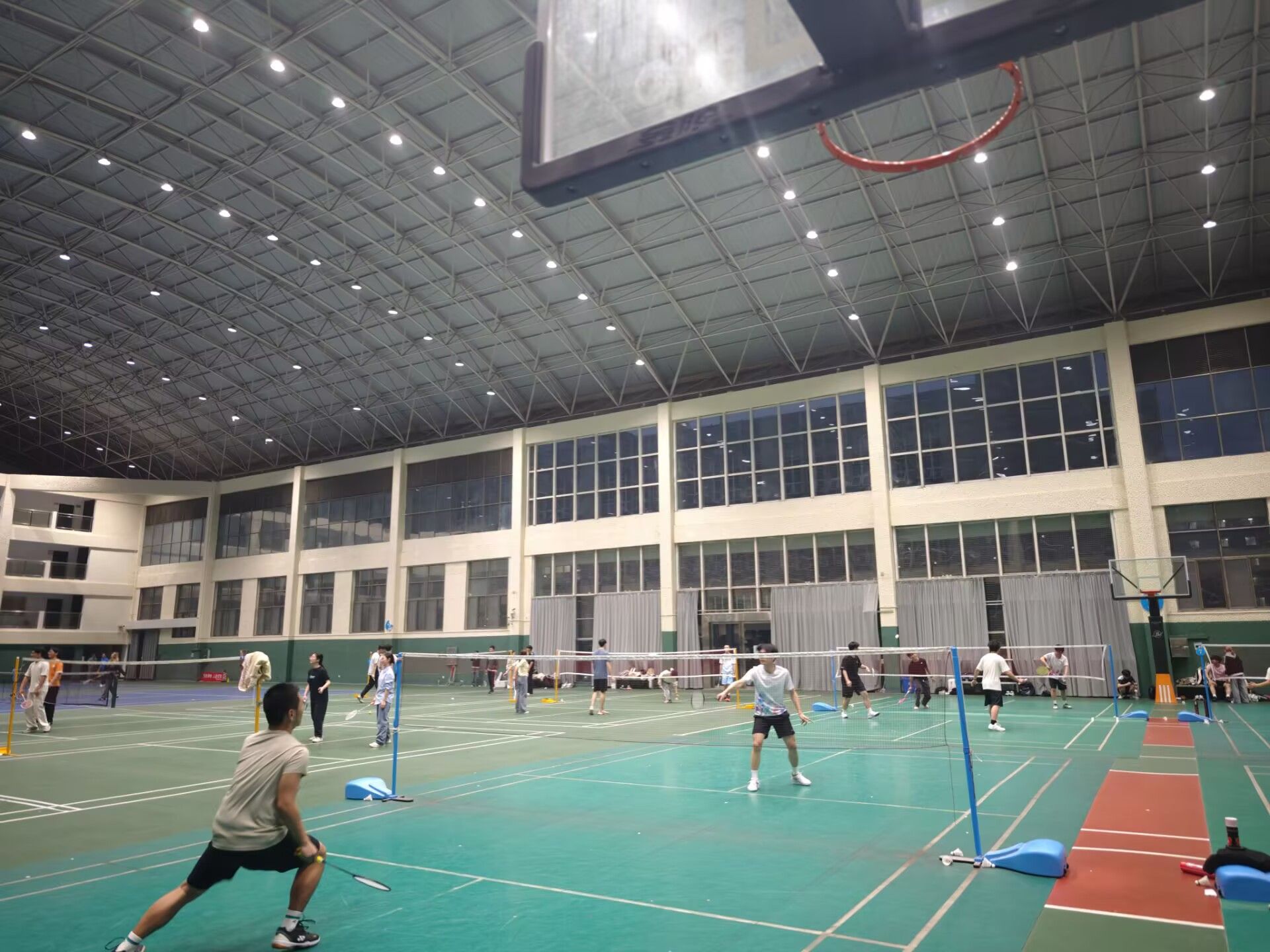 值得一提的是,课程中途还吸引了其他学院的羽毛球爱好者主动加入。同学们跨学院跨专业,在球网两端切磋球技,时而大力扣杀,时而轻吊网前,现场欢呼声与击球声交织成一片,交流氛围热烈。
